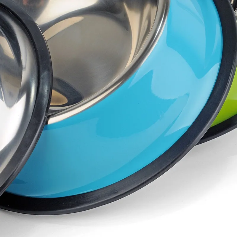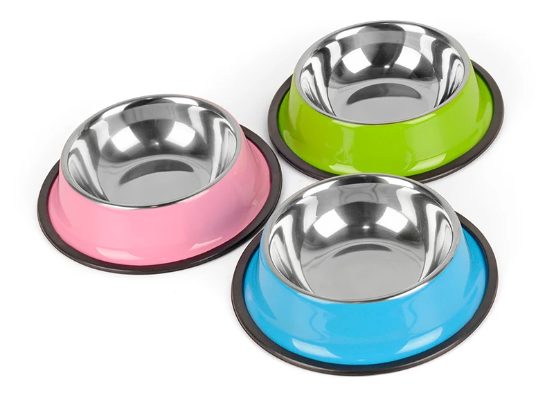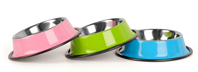 1pc Pet Dog Bowls Stainless Steel Blue/Pink/Green Pet Food Water Drink Dishes Feeder For Cat Puppy Dogs S/M/L